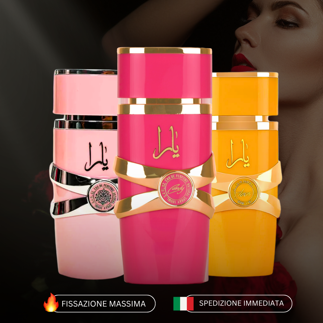 Scopri il fascino degli aromi arabi con il nostro incredibile Pack Trio di Profumi Yara! Questo set è perfetto per le donne che desiderano sentirsi uniche e irresistibili!